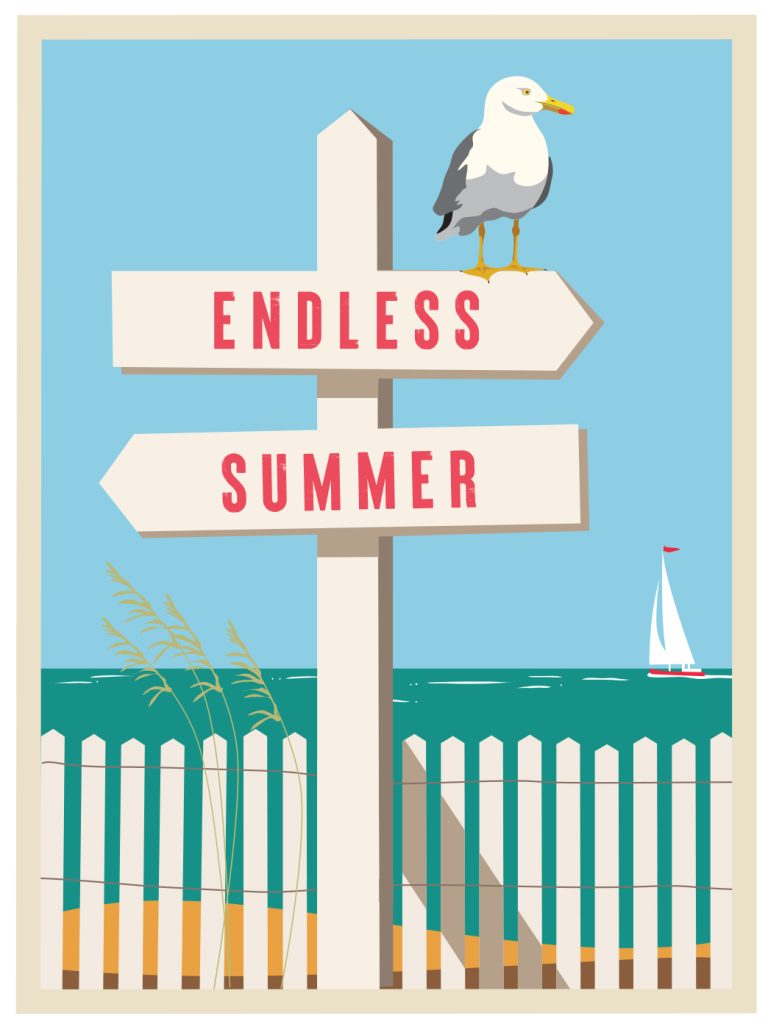 Graphic poster illustration for beach promotion.